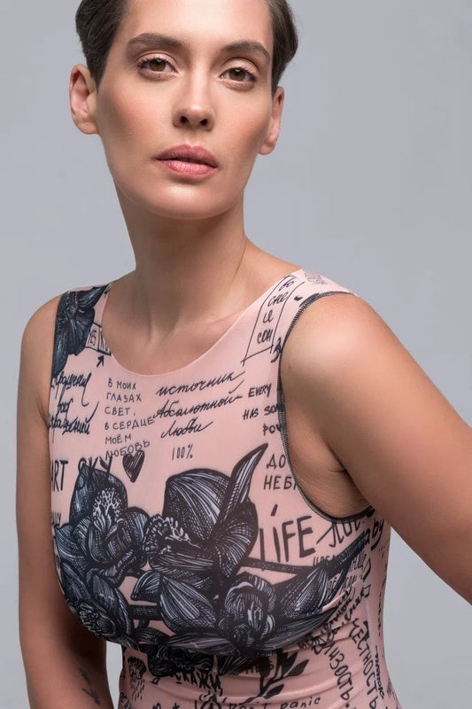 Peonies One-Piece Sleeveless Swimsuit
