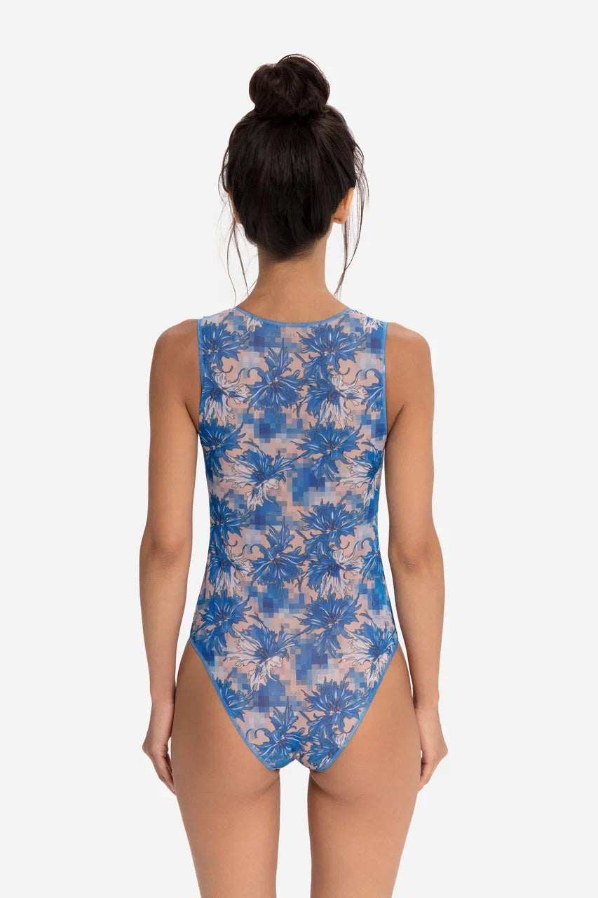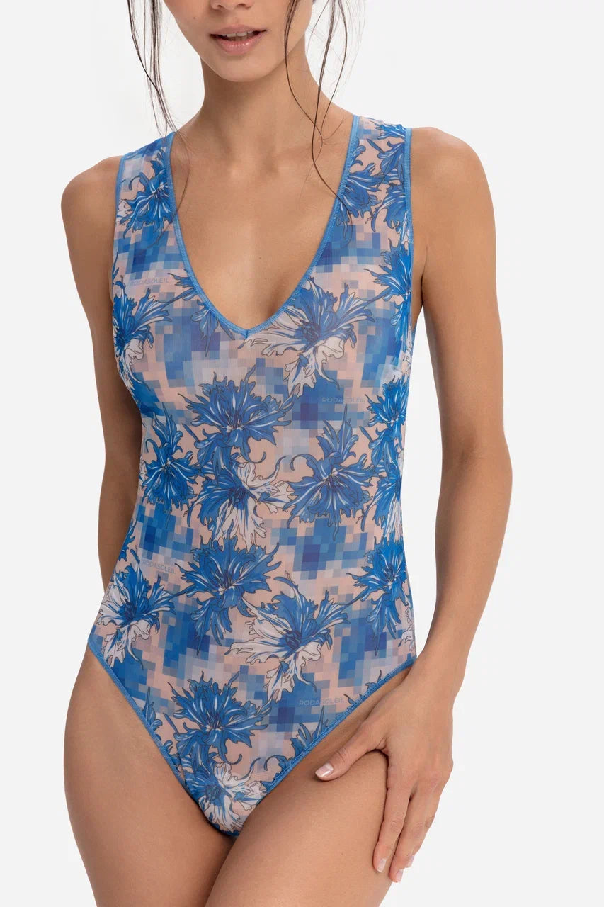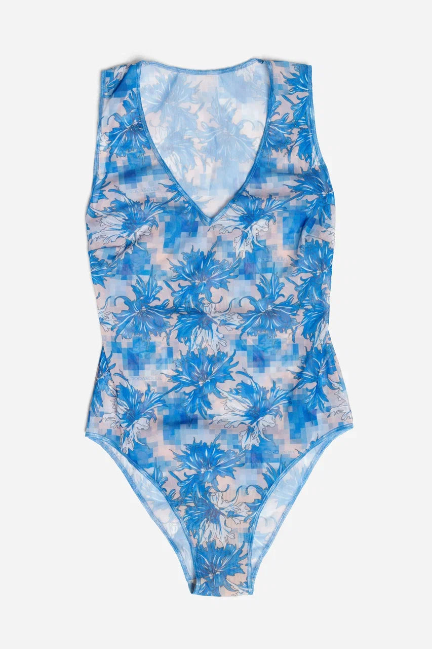 Cornflowers Pixel Sleeveless Swimsuit with V-neck
